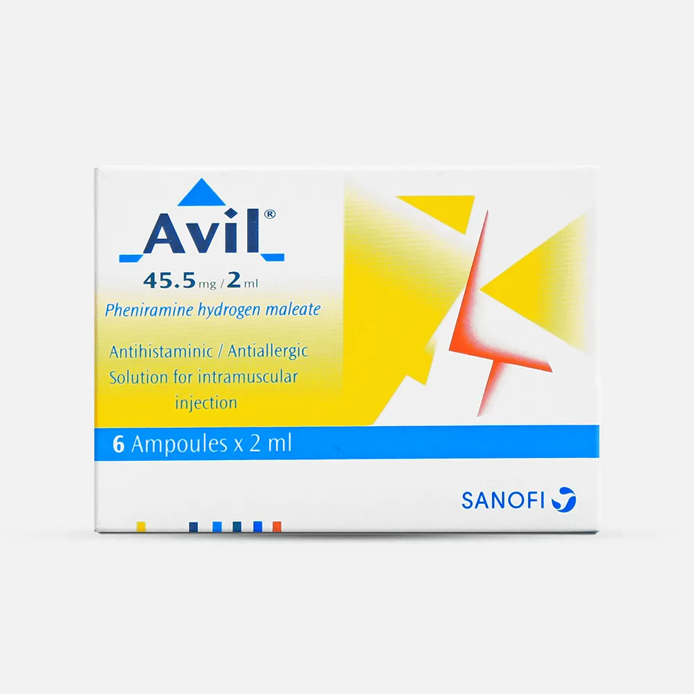 افيل حقن للحساسية للحقن العضلي | 6 امبولات AVIL 45.5 MG 2 ML 6 AMP