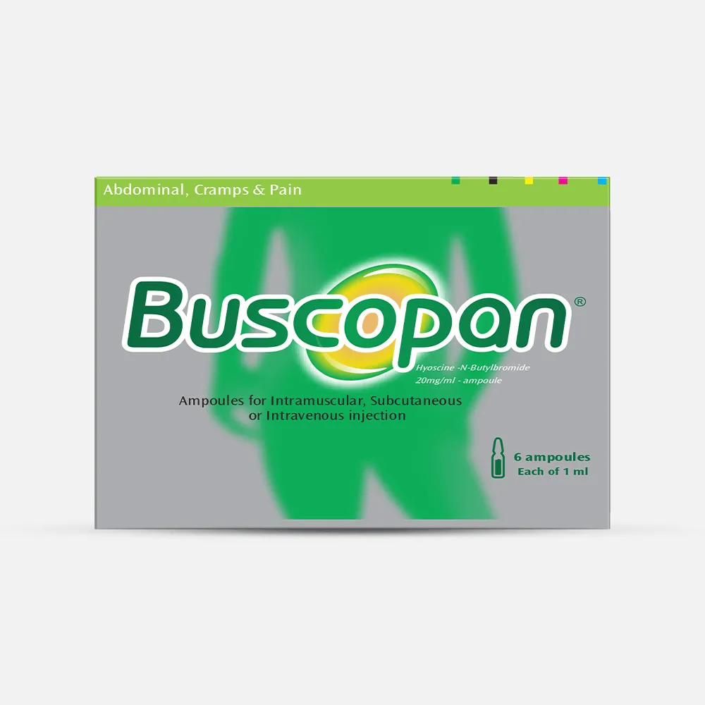 بسكوبان حقن مضاد للتقلصات ومسكن للألم | 20 مجم | 6 امبولات BUSCOPAN 6 AMP