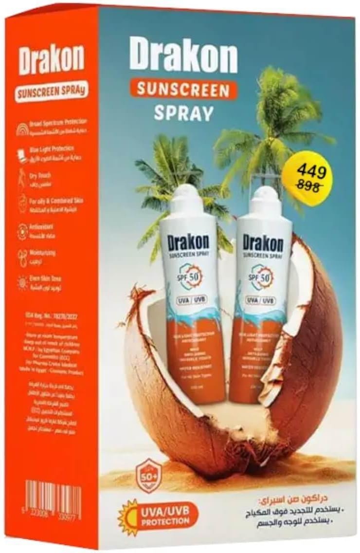 دراكون بخاخ واقي من الشمس بعامل وقاية 50 200 مل 1+1 Drakon Sunscreen Spray SPF 50 200ml 1+1
